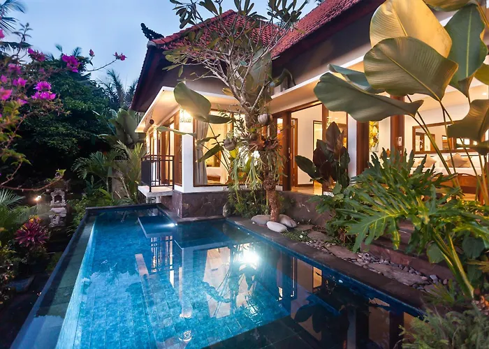 此别墅位于乌布,有好位置,距离伍拉-赖国际机场有35分钟的车程. 住所距离普拉萨拉舍瓦提有15分钟车程. 从别墅很方便到达Warung Dw.Malen 及Warung Balifornia餐厅,仅有350米距离. 别墅毗邻圣猴森林公园.